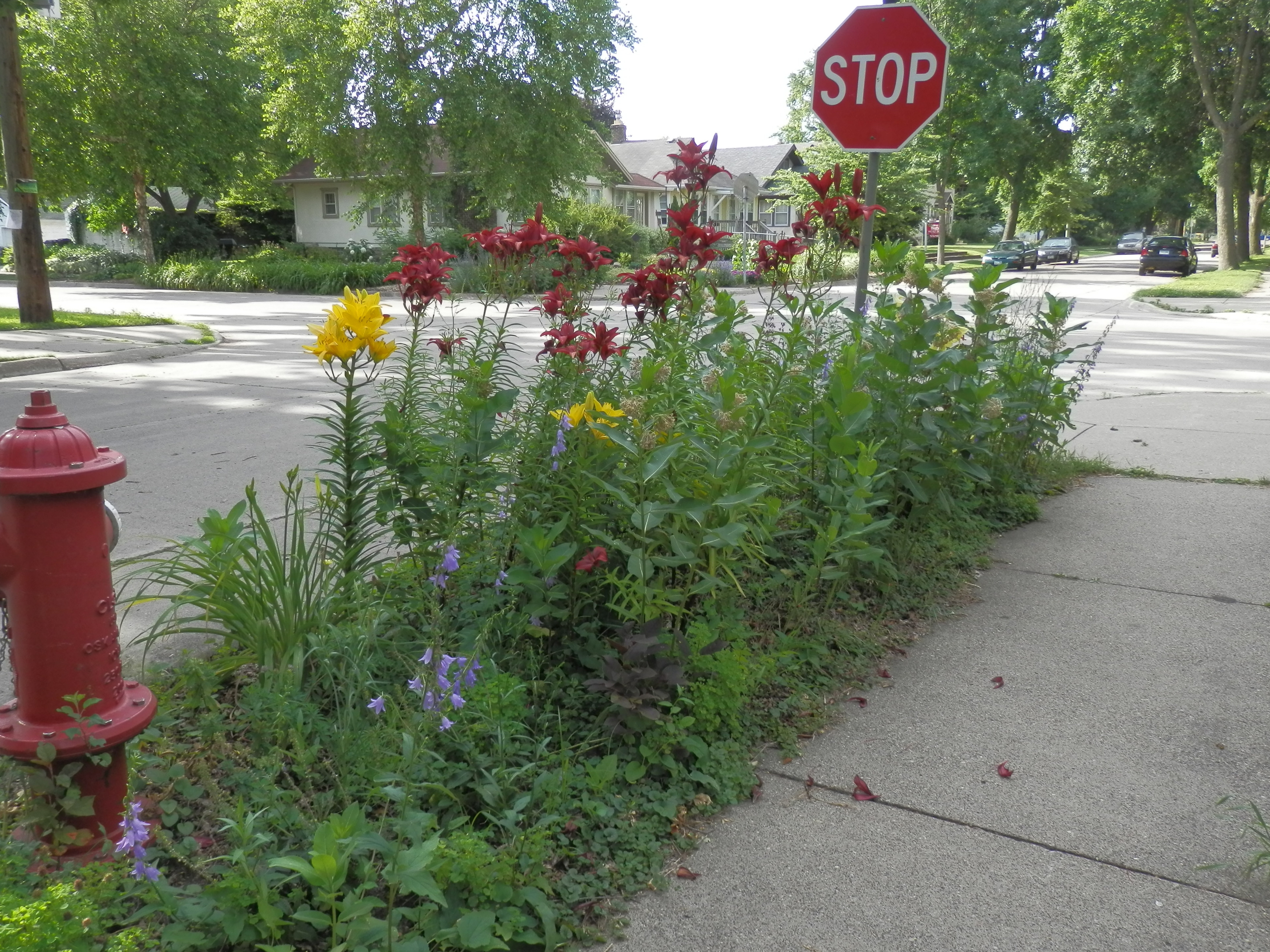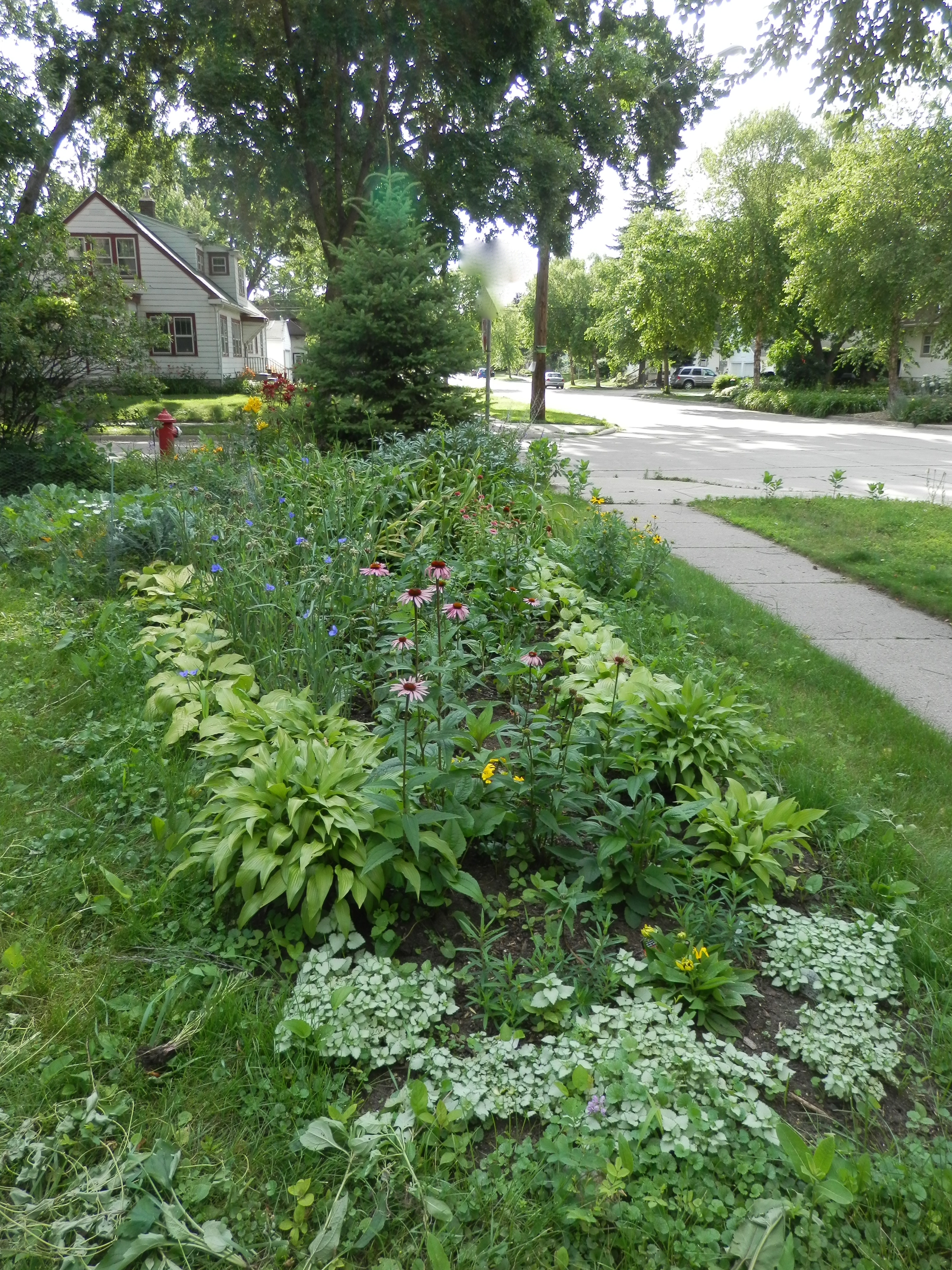 All the plants that were removed from the side of the house were moved into a flower garden by the sidewalk. With extra shade from the boulevard trees, they are thriving.