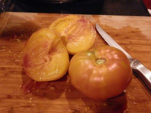 Some of us in Transition Longfellow brainstormed a way to share the work and minimize the heat. We asked to use the kitchen at a nearby church, got the kettles going, and then one by one people processed their vegetables in the same hot water bath. We couldn’t save time, but it did save money and energy. We didn’t have six large canners of hot water heating, just one that was used by six people. And we could hang around and talk while waiting.
